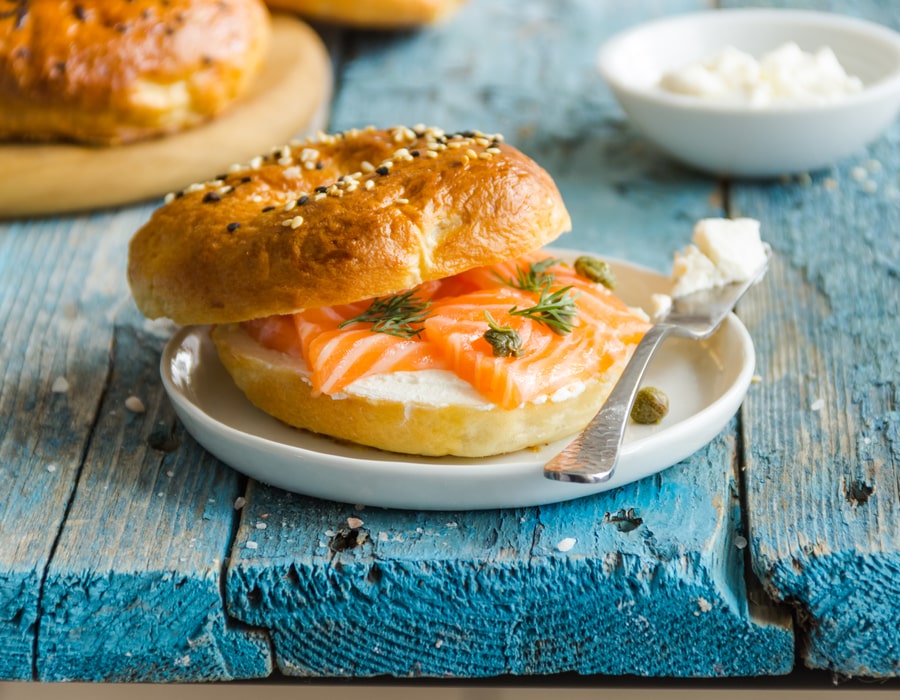 Bagel, Smoked Salmon, and Cream Cheese Sandwich