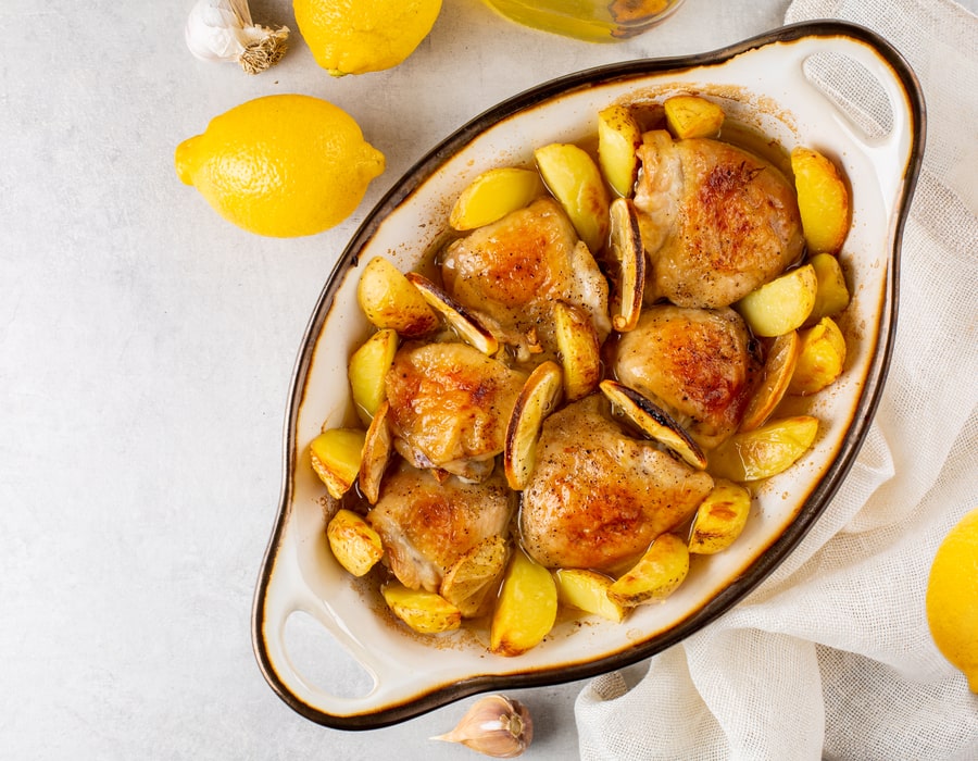 As it should be cooked in an oven, potato and chicken will be tender and have incredible taste. Garlic is one of the best ingredients for this kind of meat, so you will definitely like it.
